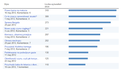 …ale po pierwszym roku – a dokładniej po 8 miesiącach blogowania – pokuszę się o skromne podsumowanie (niech mi będzie wolno rzec) dorobku. A zatem rok 2012 (maj–grudzień), to: