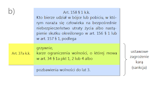 W rezultacie przeprowadzonej interpretacji wiemy już na pewno, jak brzmi dyspozycja normy sankcjonującej zamieszczonej w art. 158 § 1 k.k., w zakresie ustawowego zagrożenia karą. Ilustruje ją schemat b).